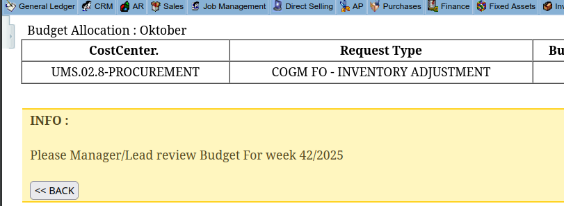 2. Semua member Departemen atau Costcenter tersebut tidak bisa melakukan transaksi IRM dan CBR