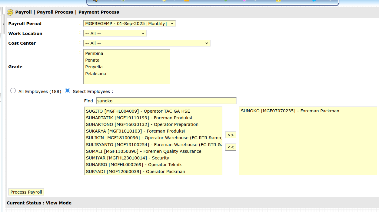 - Jika Karyawan tidak muncul di list, pastikan Master setting Group Data SUdah disetting