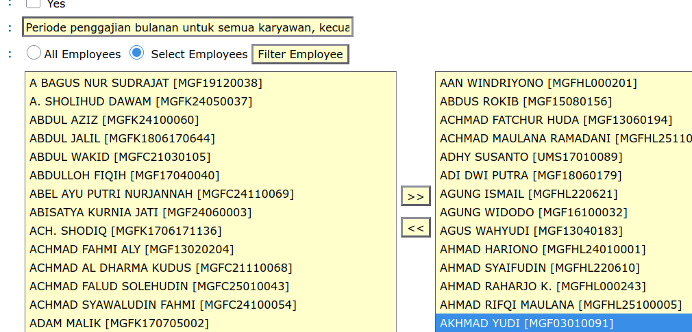 - Jika Memang karyawan tersebut tidak ingin diproses .Keluarhan Karyawan - karyawan tersebut di periode gaji